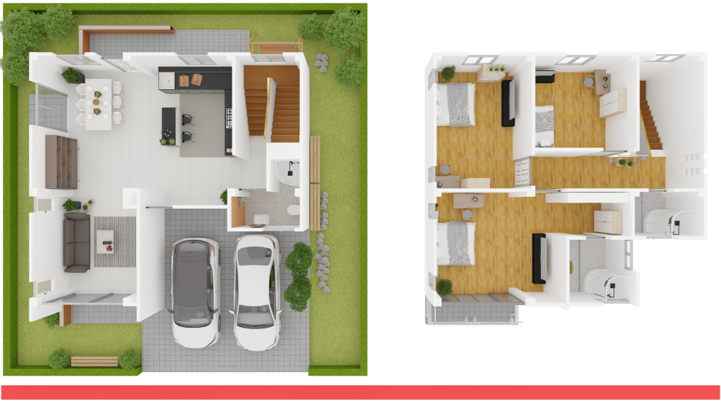 รูปแบบบ้าน : บ้านสไตล์ร่วมสมัย Contempory Style ที่มีฟังก์ชันการใช้งานครบ แบ่งสัดส่วนไว้อย่างชัดเจน ห้องนอนขนาดใหญ่ทุกห้อง พักอาศัยได้อย่างสบาย มีห้องพระจัดไว้เป็นพิเศษ ห้องนอนมาสเตอร์ มีห้องน้ำในห้องนอน ฝ้าเพดานสูง ทำให้รู้สึกโปร่งสบาย เหมาะสมสำหรับครอบครัว ที่ต้องการขยับขยายบ้านใหญ่ขึ้น